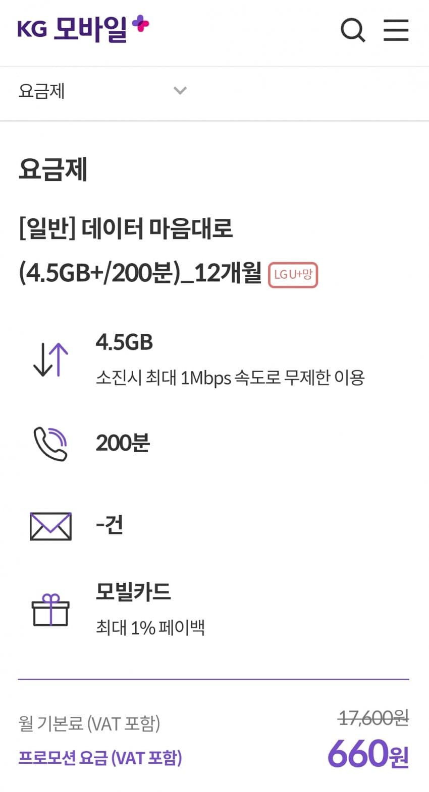 kg, 시월 일반유심 무료